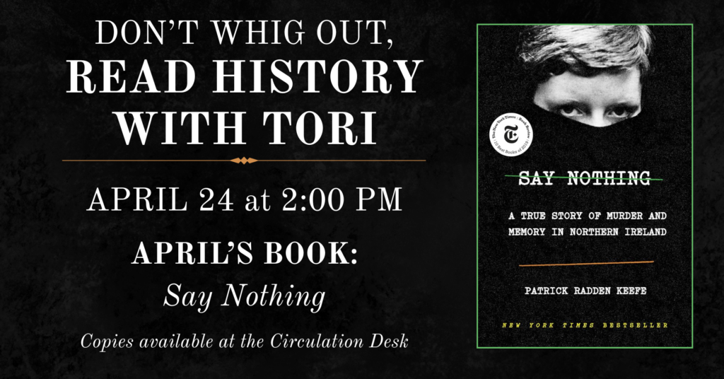 The Special Collections Librarian hosts a monthly book group, “Read History with Tori”, which meets on the last Friday of every month to discuss books that are all about history. Most books have focused on Colonial American History, but suggestions for texts on other periods of history are always welcome!